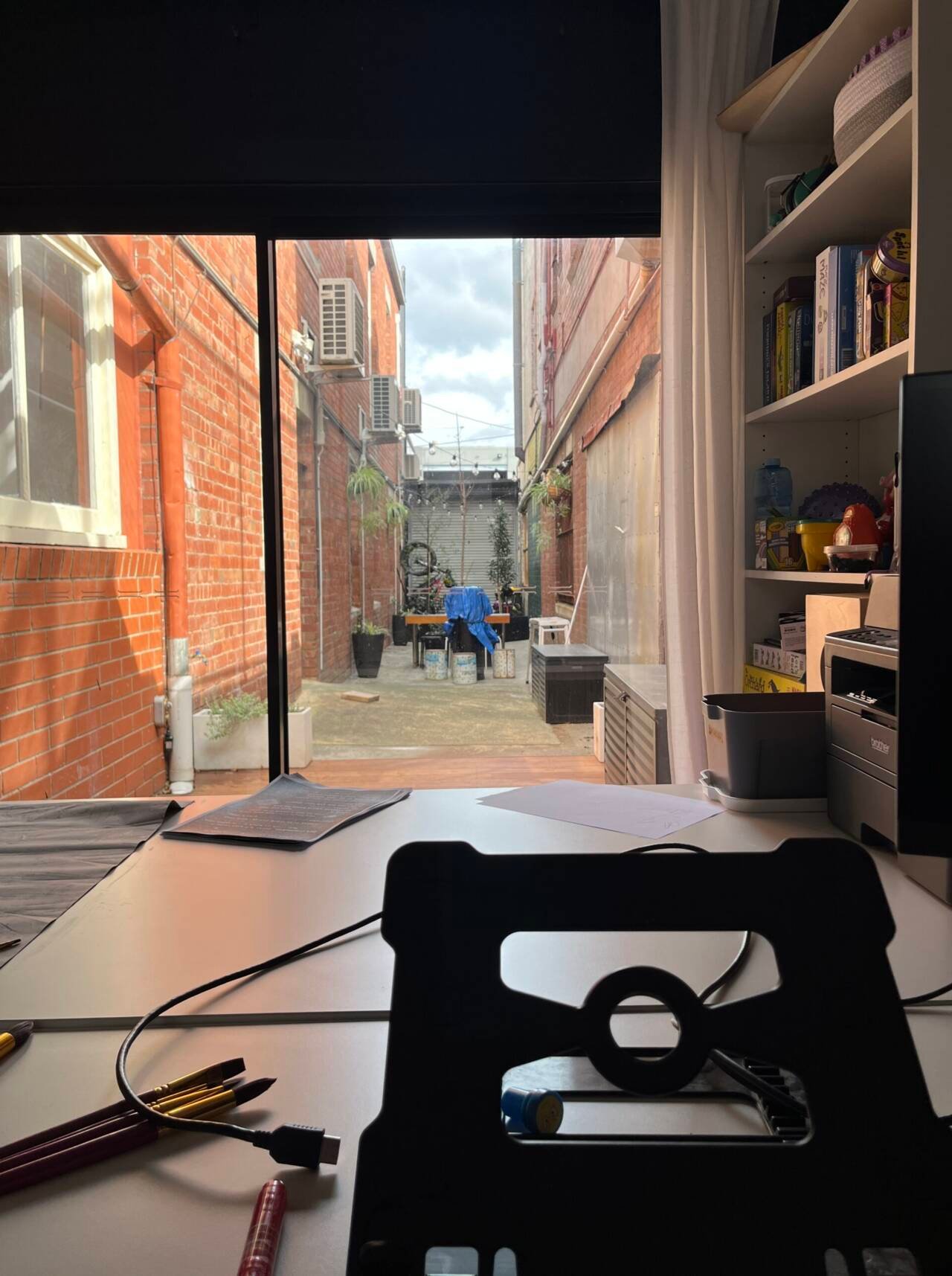 View to the deck and alleyway green space we are creating for members of the coworking space.